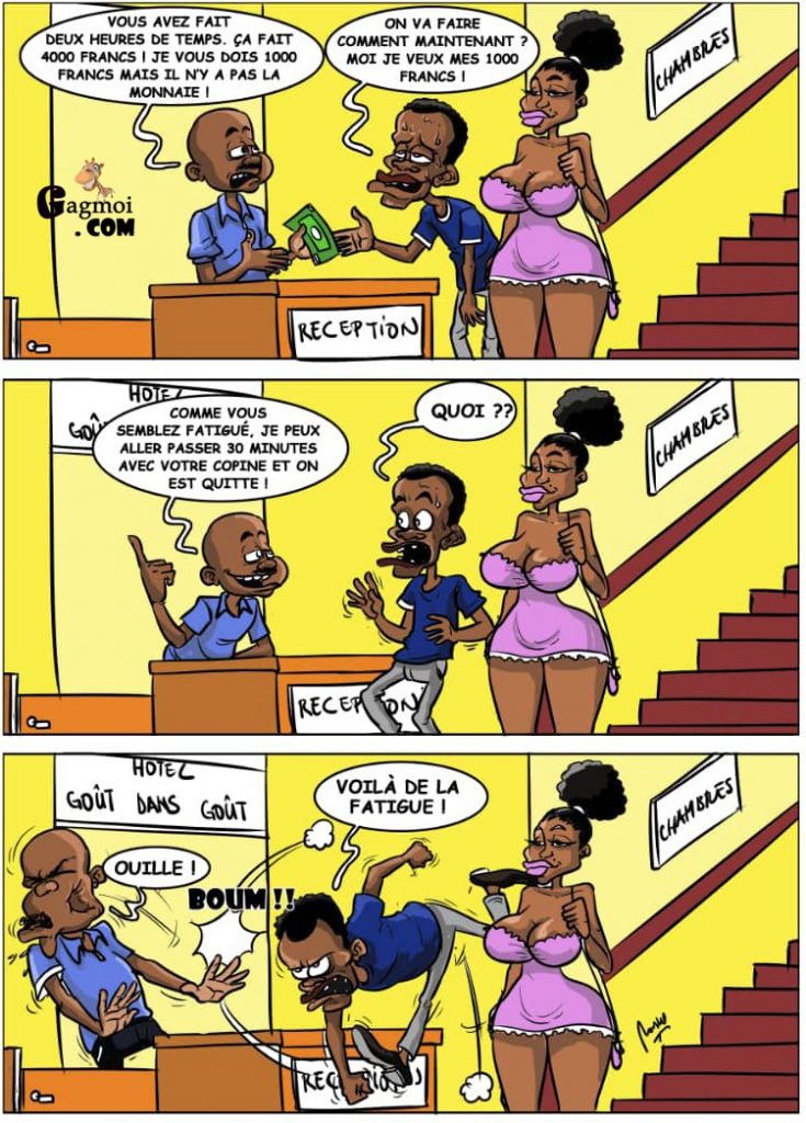 Lui, réceptionniste, c’est l’ami qui aime tout dévorer, mais là, il est tombé sur plus coriace que lui. Il ne fera plus de blagues dans sa vie.