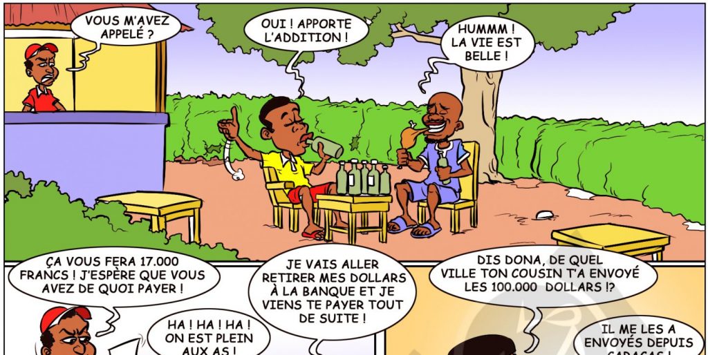 La connerie encore c’est que notre vieux Dona n’a pas pris le soin de faire la conversion de l’argent qu’on lui a envoyé en francs CFA.