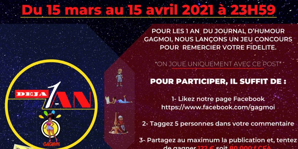 Gagmoi, organise du 15 mars au 15 avril 2021 un jeu intitulé : « DEJA 1 AN »