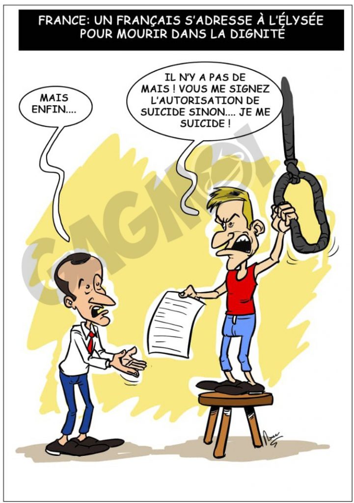 Qu’on lui autorise une euthanasie ou pas tout est déjà en place pour son voyage dans le pays de l’au-delà. Si son jeune frère à l’Elysée refuse de lui donner son visa, toutes les dispositions sont prises et ce sera en direct sur Facebook. On ne blague pas avec le coq.