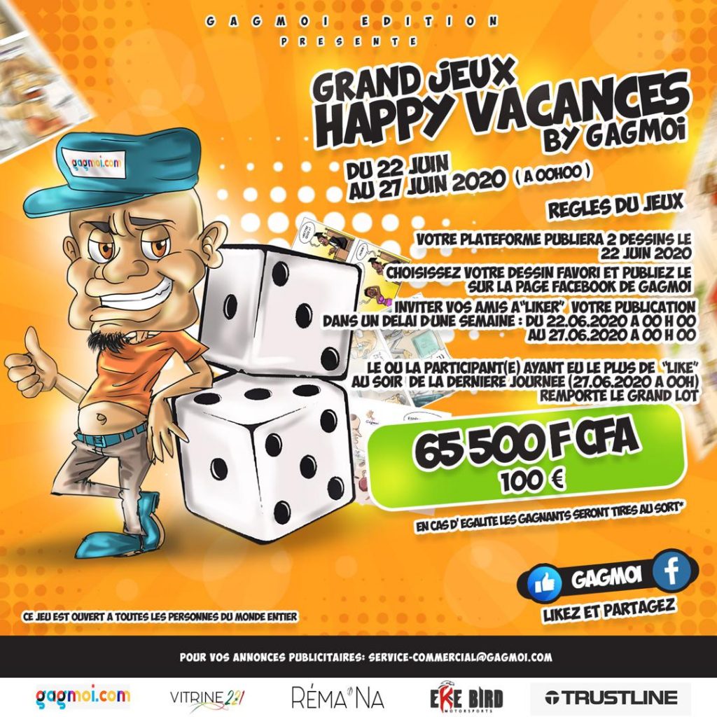 – Ces 2 dessins de caricatures seront pris au choix par les participants et publiés sur la page Facebook officielle de GAGMOI == > https://www.facebook.com/gagmoi