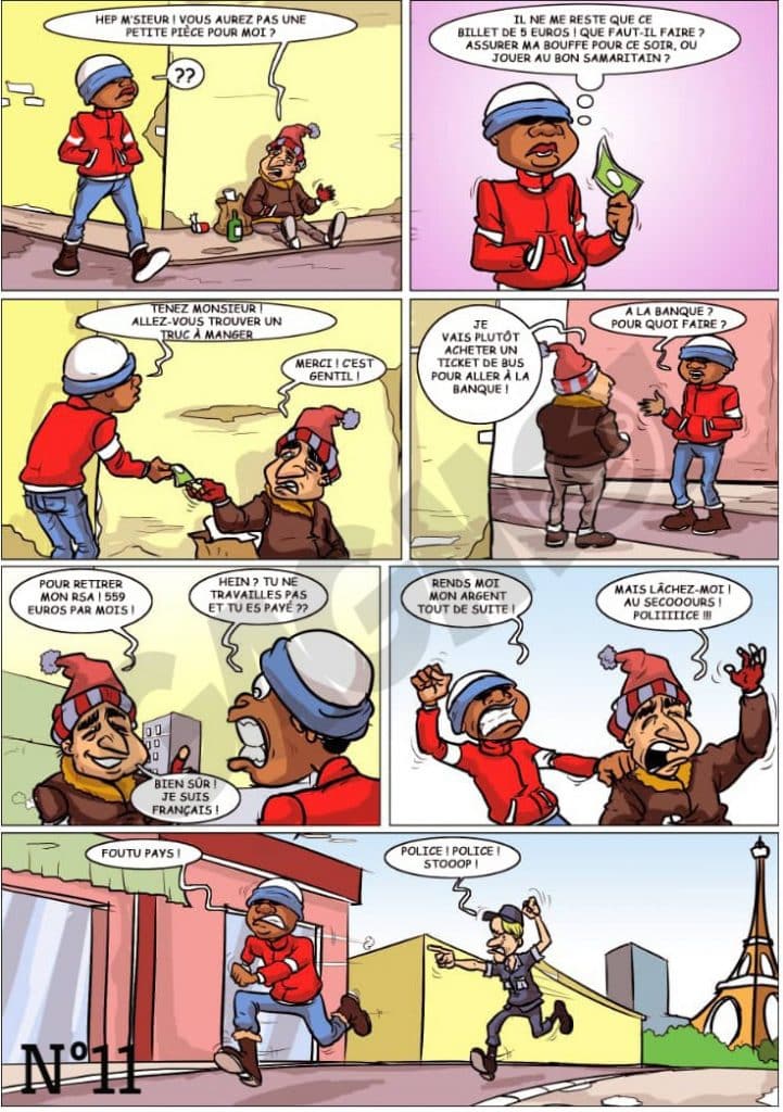 De plus, quand on vit en Afrique, on a parfois l’impression que tout est simple dans le pays de l’oncle SAM. Et souvent, c’est l’eldorado, disent-ils… Cependant, l’envers du décor est tout ce que Manu vous raconte à travers ces petites séries indépendantes les unes des autres. Nous avons souhaité tout de même raconter le réel, afin que chacun puisse se voir dans nos publications.