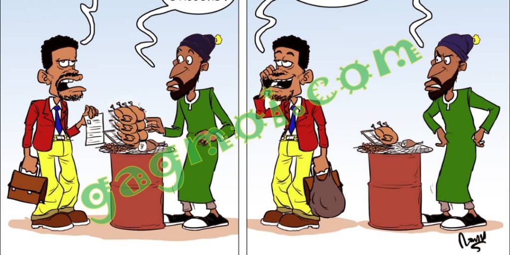 Qui travaille à l’hôtel, vit de l’hôtel… Disait mon vieux père qui n’est plus. C’est l’histoire de ce jeune agent des services d’hygiène, qui veut profiter de l’ignorance de ce vendeur. Mais je crois que ça sent mauvais pour lui. Hey ! Venez le sauver, blague à part. Si non, il va finir en pâté.